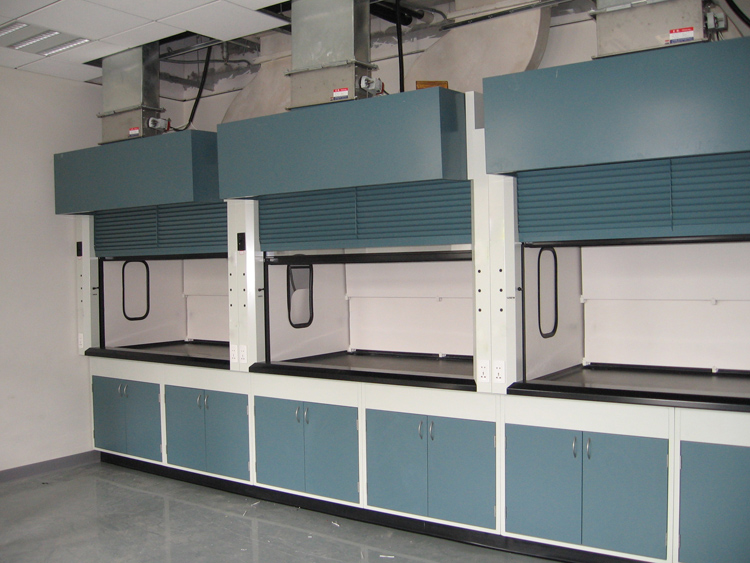 標準的高氯酸通風柜應采用一體性的操作面,圓弧邊角,內襯應采用非有機材料。高氯酸是一種極其活躍的氧化劑,其蒸氣可能在管道內不穩定累積,從而產生爆炸危險。為降低此危險,排風系統應配備內置的水洗系統以及相應的排水系統,排風管需由平滑、密封、易于清洗且耐腐蝕的材料制成。內置的水洗系統需完全沖刷管道、排風機、尾氣排放裝置以及通風柜內表面。排風管應盡可能短,且盡量減少彎頭。如果高氯酸排風管道較長,則需采用進行分段清洗的系統,以避免排水量超過通風柜排水能力。由于高氯酸是一種極其活躍的氧化劑,因此在排風系統內的部件,如接頭或密封圈等,應盡量避免使用有機材料。排風管道應采用鎳鉻含量不低于316標準的不銹鋼,或其他適用的非金屬材料制作,接頭處應焊接并打磨光滑。高氯酸排風系統只應應用于涉及高氯酸的操作。