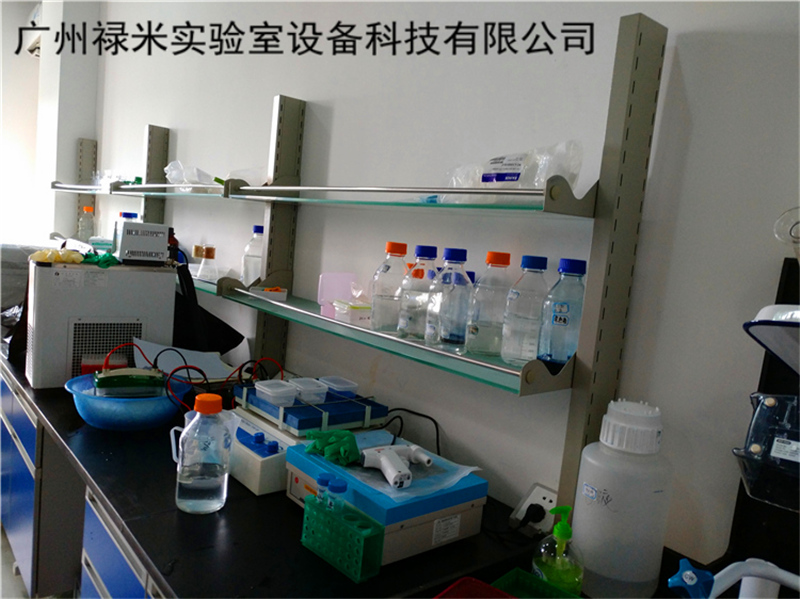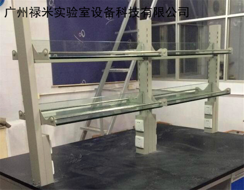 試劑架立柱:1.5MM優質冷軋鋼板折彎、沖孔,表面經酸洗、磷化、環氧噴涂,每10MM有一調節孔位,可調節試劑架層板的高度。