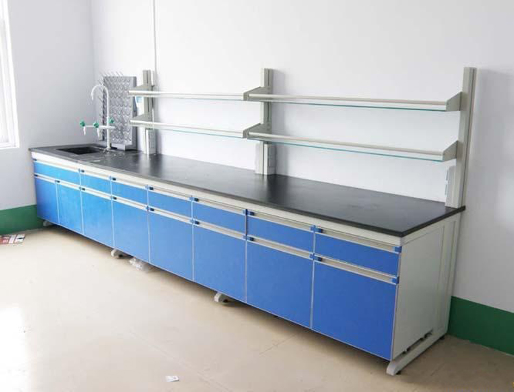 試劑架:立柱采用1.5mm優質方管,表面經環氧樹脂粉末烤漆處理;層板采用10mm單面磨砂玻璃,四周車邊處理,光滑,不傷手,配玻璃托板及鋼板拆彎掛鉤,可根據需求自由調節高度;邊緣配φ12mm不銹鋼管,以防止物體跌落。