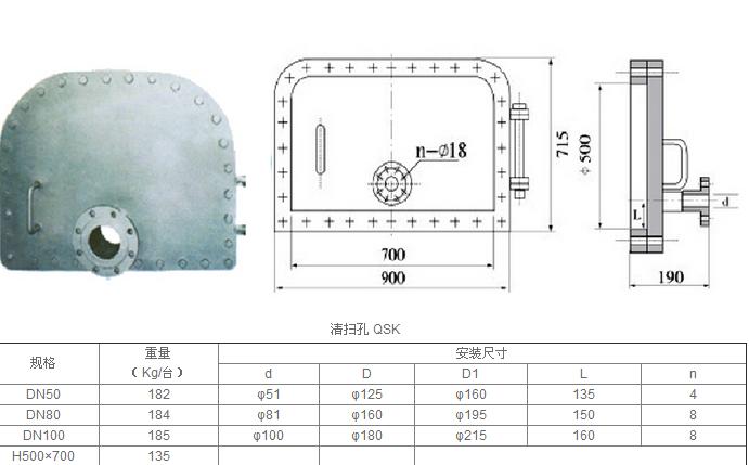 GSQ清掃孔裝于重質(zhì)油罐底部,清掃油罐進要放出污水及掃除罐內(nèi)污泥,其中GSQ-50A、GSQ-80B、GSQ-100C,帶有放水管,出廠時不供應孔頸及加強板。
