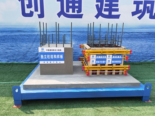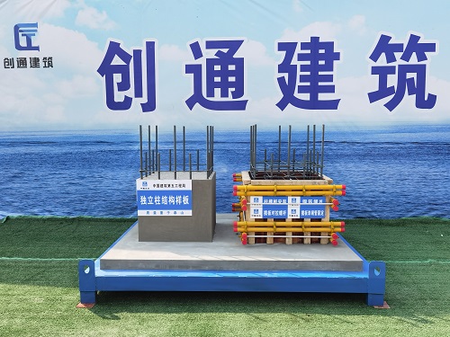 質量樣板展示區-獨立柱結構樣板展示:鋼筋設置、鋼筋綁扎、框架柱砼、柱支模等工藝。